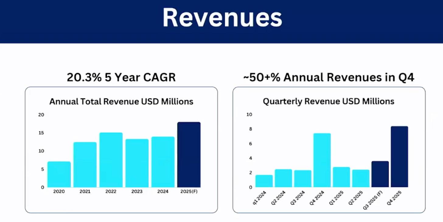 As it pertains to Kidoz, it has built the direct client relationships, proprietary technology and (most importantly) targets a demographic that has been underrepresented by competitors in any meaningful way. What caught my attention was a slide in an October Toronto (Planet MicroCap) presentation where they telegraphed 75% of revenue coming in H2 after a choppy start to the year. With a 60% year-over-year revenue increase in Q3, they are on target to do $18M+ this year.
