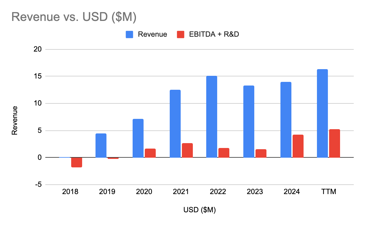 An interesting thing about Kidoz is that they expense all their R&D costs. That means if they are enhancing or building a new product, all the development expense associated with that build hits the P&L. Meanwhile, the useful life of the developed product can be measured in years. Here is what profitability would look like if you removed R&D expenses: