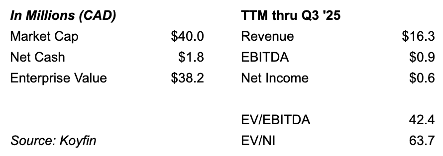 Look, it’s easy to fool yourself with non-GAAP financials. The reality of their true profitability probably lies somewhere between EBITDA and EBITDA + D&A. If you take this adjusted value, Kidoz did $5.3M in adjusted profit, which is 7.5x EV/AEBITDA. I expect this number to improve nicely after Q4, which has been guided to be a record. Additionally, there was a net working capital balance at the end of Q3 ~$3M that should turn into cash over time.